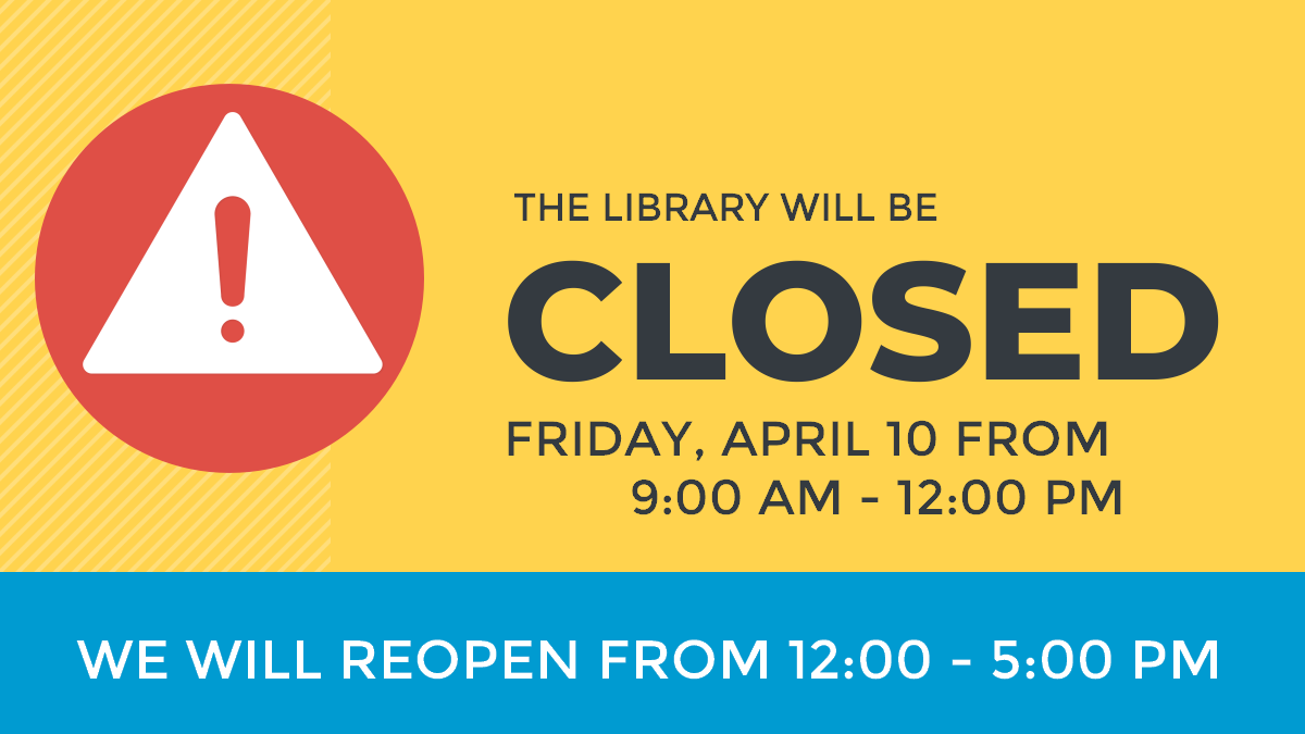 Library Hours Mon, Tues, Wed: 9:00 a.m. - 8:00 p.m. Thursday & Friday: 9:00 a.m. - 5:00 p.m. Saturday: 9:00 a.m. - 2:00 p.m.